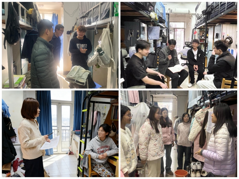 走访过程中,辅导员们逐一走进宿舍,与同学们亲切交谈,细致询问大家日常生活与学习状况,认真倾听同学们的需求与心声。老师们围绕宿舍用电安全、防火防盗、防诈骗等关键要点展开宣传教育,着重提醒同学们严格遵守学校宿舍管理规定,严禁使用违规电器,做到人走断电,养成良好的安全用电习惯。