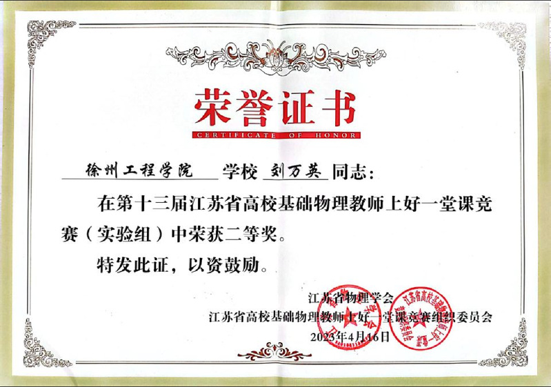 我院刘万英老师荣获二等奖。物新学院以组织教师参赛为契机,全面深化教育教学改革,突出质量内涵建设,进一步推进学院基础物理理论和实验教学内容和课程体系改革,对于提高青年教师的授课质量和教学水平具有重要的意义。我院青年教师在本届大赛取得的优异成绩充分展示了教师的教学水平,这也是学校和教务处领导以及学院长期以来重视教学、重视青年教师培养的成果。