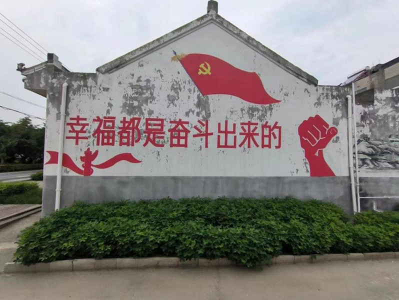 “乡野志愿”实践小组根据调研资料及反馈结果,切实跟踪民意需求、结合当地特色,最终确定以“乡村振兴”、“红色文化”等元素为主题,利用CAD及PS等作图软件技术进行墙绘设计与制作,实现了理论知识到实践成果的转化,弘扬主旋律,传播正能量,彰显了新时代青年学子的青春责任与时代担当。