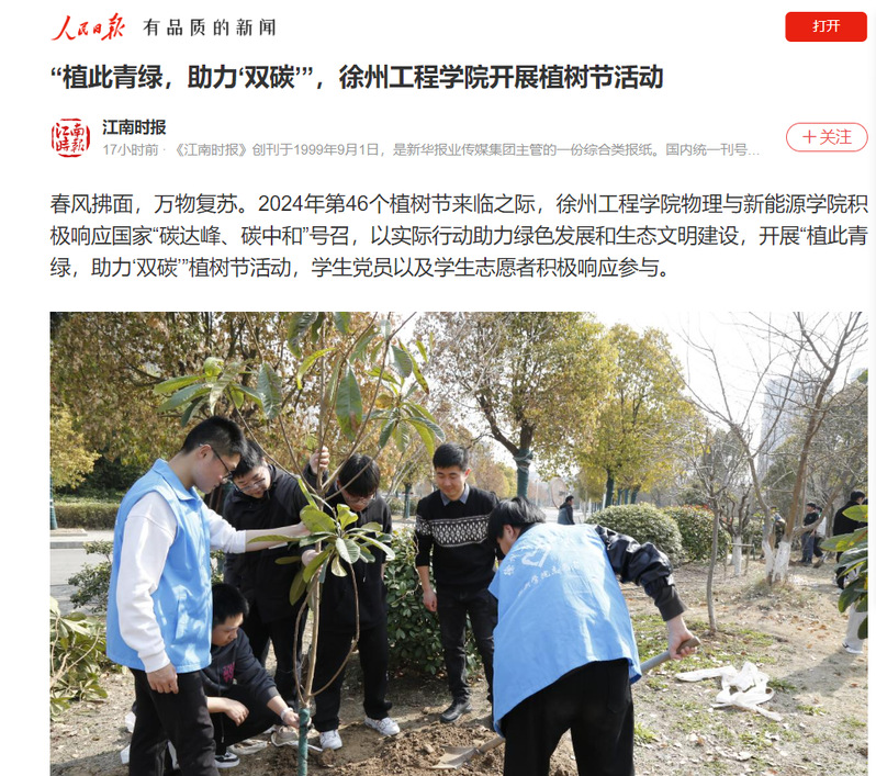 此次植树活动不仅是一次简单的环保行动,更是学院师生共同践行的责任与担当。2021级电子科学与技术专业学生党员张兆文表示:“植树造林有助减缓全球气候变暖、改善生态环境,助推双碳目标的实现。通过亲身参与,我深刻体会到植树造林的重要性,也进一步增强了保护生态环境的责任感和使命感。”“此次植树节活动不仅是一次绿色环保的实践活动,更是一次生动的生态文明教育,我们将以实际行动践行绿色发展理念,为建设美丽中国、能源强国贡献力量。”新能源科学与工程专业学生志愿者李耀威这样说。