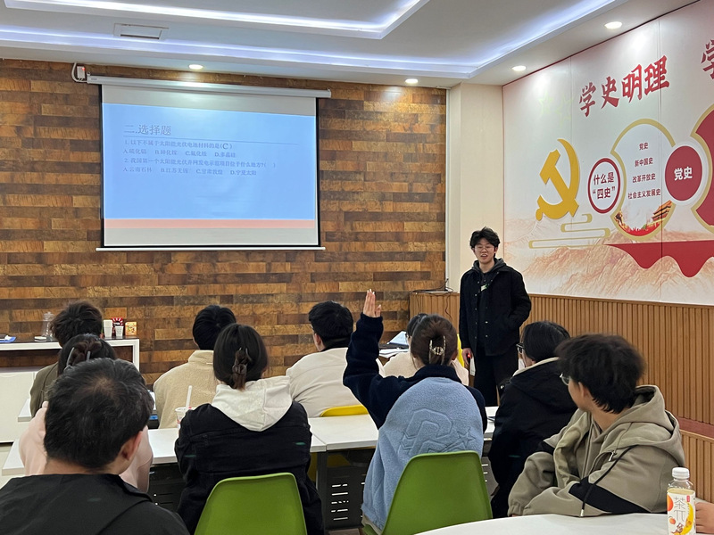 活动伊始,主持人播放一段视频作为引入,生动形象地描述了专业物理知识在日常生活中的重要性以及相关应用。随后开始知识问答环节,问题精心设计,涉及基础物理概念、电子科技、新能源前沿等多个方面,既考验了同学们的知识储备,也激发了他们对科学的好奇心和探索欲。同学们积极踊跃,热情参与。活动通过专业知识互动问答的形式,增强了学生们对专业学习的兴趣,促进宿舍文化建设的同时,也丰富了学生的课余生活。