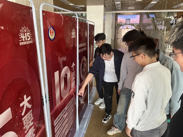 第九个全民国家安全教育日主题展览。通过观看展板,引导学生树立国家安全意识,自觉关心、维护国家安全,推动国家安全理念入脑入心,同时带动校园发展、学院建设,迸发新生活力。