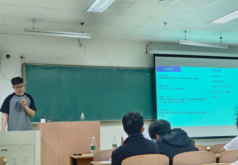 分享会上,几位同学回顾了自己的备考历程,详细讲述了备考过程中的困惑、挑战和解决方法,以及如何在压力下保持积极心态,如何合理安排复习时间和科目,如何高效利用学习资源等。全面备战,重点突破:鼓励同学们分析自己的优劣科目,掌握背后的原理,逐步培养自己的解题思维;啃透教材,多看书,多思考。主动出击,了解信息:分析近年考研形势的变化,包括报考院校情况,鼓励同学们根据自身情况,报考专业院校,切忌盲目填报;要选择与自己能力相匹配的院校及专业,不轻易放弃。及时复盘,调整心态:建议低年级学生提早进入备考,考研是一场持久战,切忌跟风,给自己一个考研的理由并坚持下去,注重劳逸结合,保持一个好的学习状态是制胜的关键。